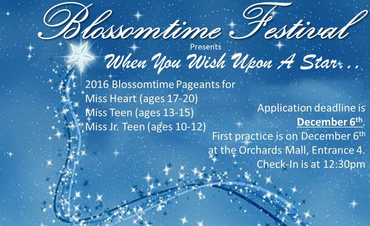 The Miss Heart of Blossomtime Pageant originated in 1992 & gives young women from communities that do not host a pageant the opportunity to compete for Miss Blossomtime. Some of these communities are: Allegan, Dowagiac, Covert, Fennville, Mattawan, Marcellus, Niles/Brandywine, Three Rivers, Vicksburg & surrounding communities in Southwest Michigan.